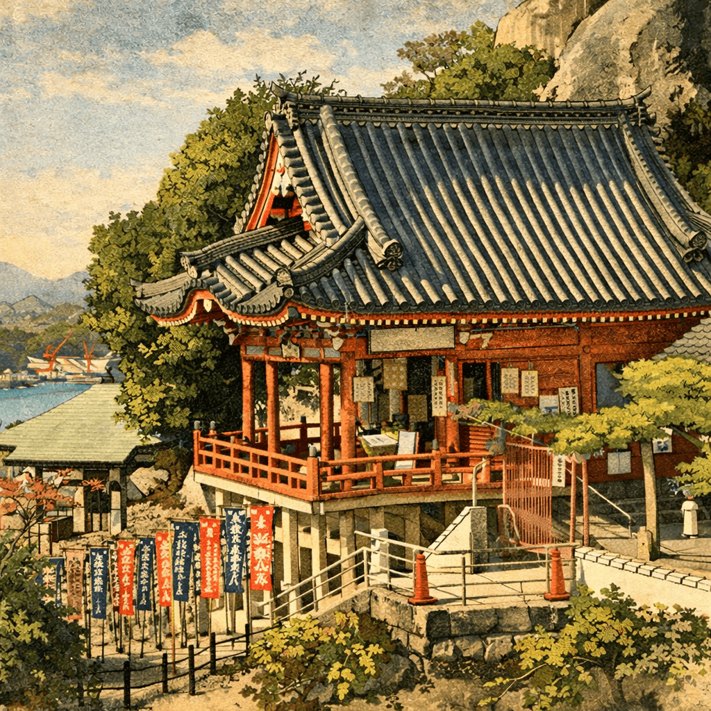 In its present form, Senkoji is a temple of the Koyasan Shingon school, the esoteric Buddhist lineage founded by Kukai on Mount Koya in the early ninth century. The principal image of worship is an Eleven-Headed Thousand-Armed Kannon (Juichimen Senju Kannon), a major bodhisattva figure in Shingon practice whose eleven faces and thousand arms allow her to perceive suffering in every direction and to respond with infinite compassion. The iconographic parallel with Sukuna — multiple faces, multiple arms, capable of perception and action in all directions at once — is striking, and some commentators have suggested that the selection of Juichimen Senju Kannon as principal image was deliberately harmonized with the temple's Sukuna tradition.
